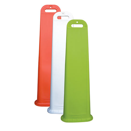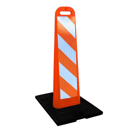 Lakeside Plastics Diamond Panel is a highly visible vertical traffic channelizer designed for service in a wide variety of vehicle and pedestrian applications. The Diamond Panel features an easy-grip handle, allowing for easy carrying and quick positioning. The unique design and shape of the Diamond Panel allows convenient stacking/transport with or without the base. The Diamond Panel can be fitted with a barricade light or signage. The Diamond Panel is made of high quality impact resistant polyethylene and can be ordered with reflective tapes and a variety of base weights (9#, 20#, 30#, 42#). Available in safety orange, lime green, black and white.
